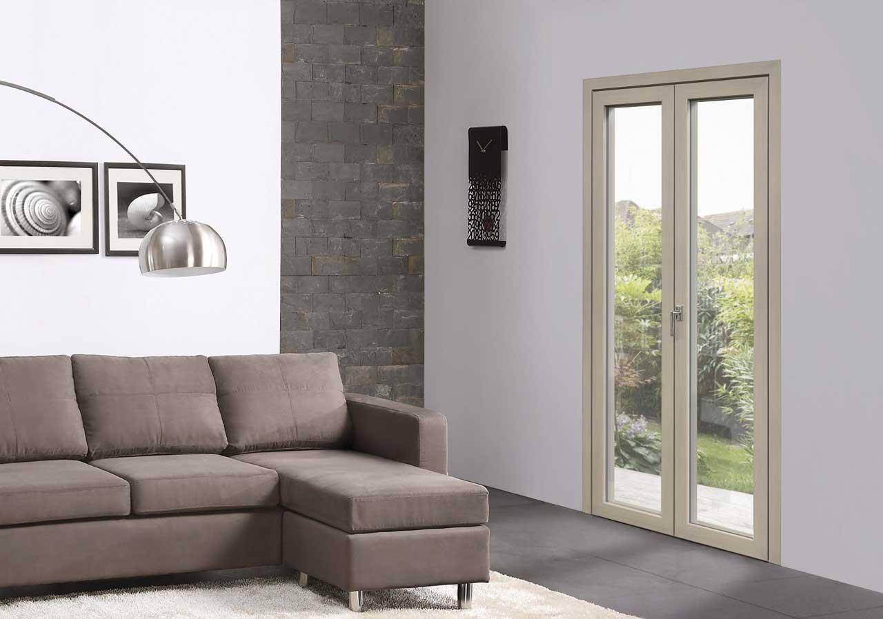 GRANDUCA HP LOOK è l'infisso costruito con l'impiego di profili in ALLUMINIO-ABS-LEGNO a taglio termico. Anta interna ed esterna piatta complanari al telaio. Per l'anta interna è possibile scegliere il taglio di giunzione a 45° e 90°. La ferramenta è a scomparsa.