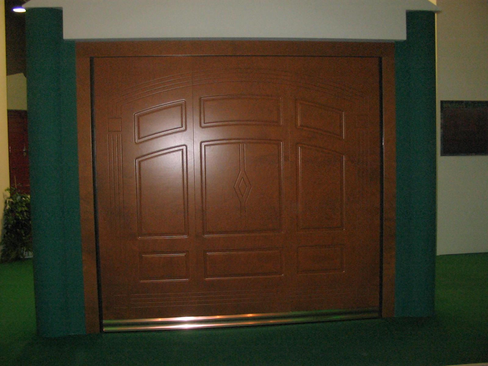 Porta ad apertura verticale costituita da pannelli coibentati scorrevoli su guide laterali.