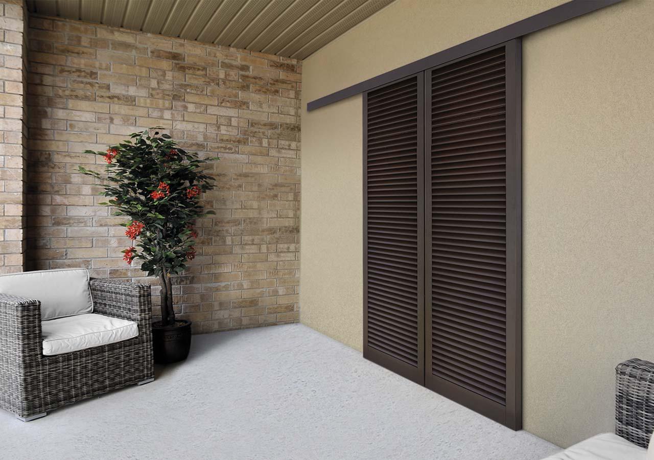 DUCHESSA è la persiana costruita con l'impiego di profili in alluminio. PERSIANA SENZA TELAIO CON CARDINE A MURO.